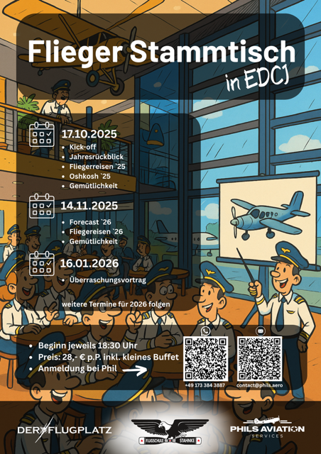 wir laden wieder zu unserem Fliegerstammtisch im Winterhalbjahr 2025/2026: